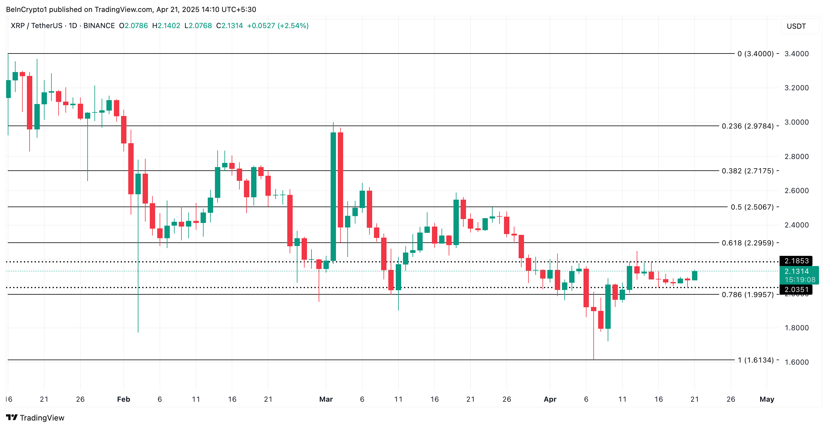Men hvis etterspørselen svekkes og bjørnene gjenvinner kontrollen, kan XRP forbli innenfor et begrenset område. Det kan til og med bryte under $ 2,03 støttenivået og falle til $ 1,99.