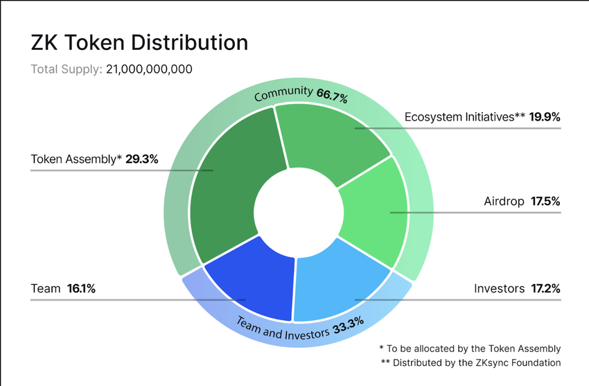 “En airdrop på 17,5 % til 695,232 lommebøker er den største distribusjonen av tokens til brukere blant større rollups. Airdroppede tokens har ingen opptjenings- eller låseperioder, og er fullt likvide på dag én. Dette beløpet er større enn de låste tildelingene for Matter Labs-teamet (16,1%) og dets investorer (17,2 %), ” nevnte ZKSyncs Community Blog.
